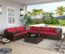 Red cushions and dark brown wicker for elegance and harmony. Freestanding sofas can be freely combined in different positions and distances according to your style. It can be placed in your garden, backyard, poolside, and other places.