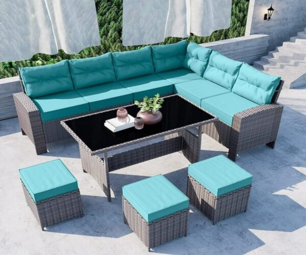 - Transform Your Living Room: The OMCCO Sofa Set includes a 9-seater couch, ottoman, center table, and cushions, all designed to provide you with the ultimate comfort and relaxation in your living space.