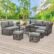 OMCCO 9 Seater Pieces Patio Furniture Set, Outdoor Sectional L-Sofa with Dining Table, All Weather Wicker Patio Conversation Sets with Ottomans (Grey)